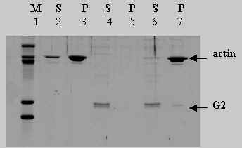 Also note that there is less actin in the sup with G2 (lane6)