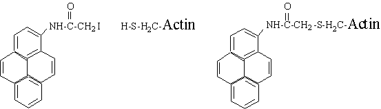 Add 4 to 7 mol pyrenyliodoacetamide (Molecular Probes) per mole of actin,