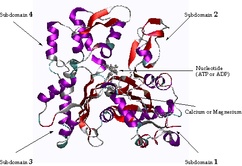 isoforms of actin. X-ray crystallography has revealed that the actin monomer is