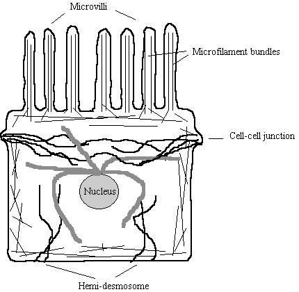 membrane, and in cell projections such as microvilli. Microtubules extend from the perinucleus towards the cell