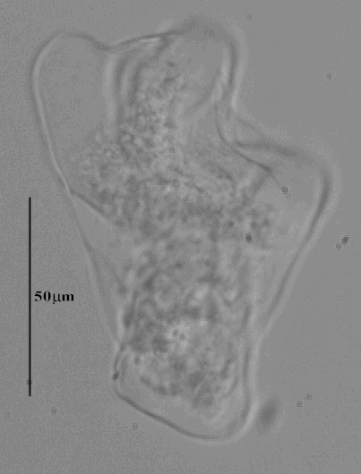 like T. verrucosa with an oblong nucleus, with multi-lobed